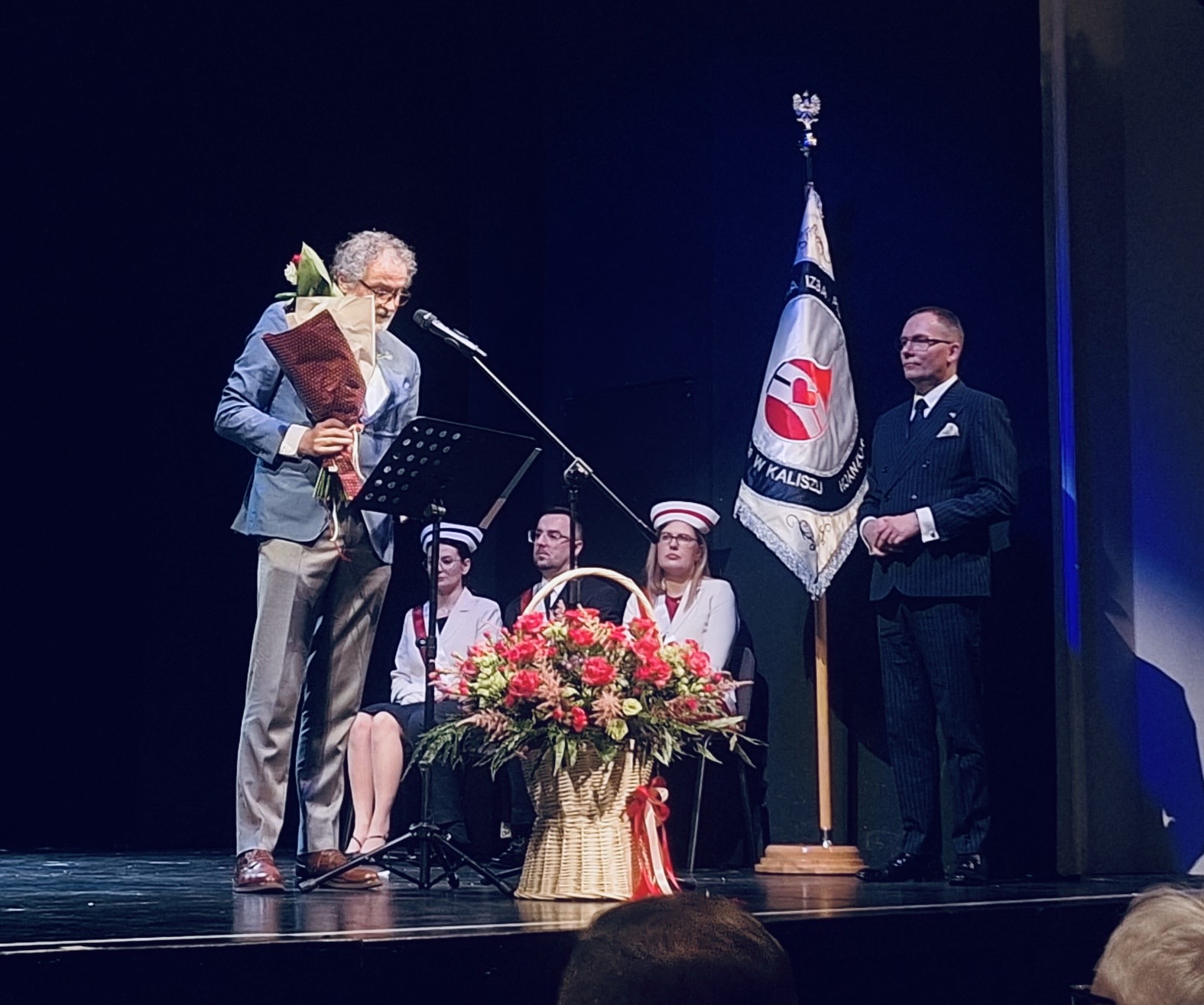 W imieniu Prezesa ORL WIL lek. Mateusza Szulcy gratulacje na ręce Przewodniczącego Okręgowej Rady Pielęgniarek i Położnych w Kaliszu Marka Przybyła złożył lek. Mariusz Pluciński, który odczytał list gratulacyjny, przekazując w imieniu środowiska lekarskiego wyrazy uznania oraz życzenia dalszego rozwoju samorządu, a także satysfakcji z wykonywanej pracy i pomyślności w życiu zawodowym i osobistym.