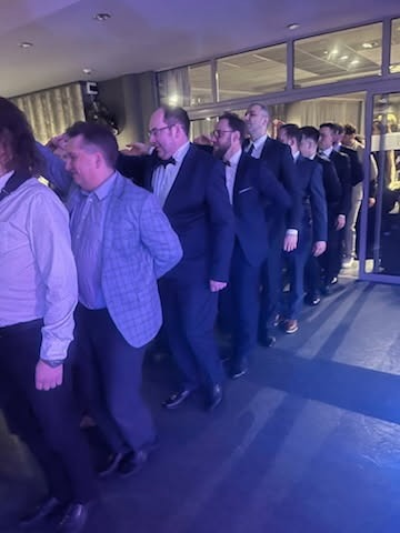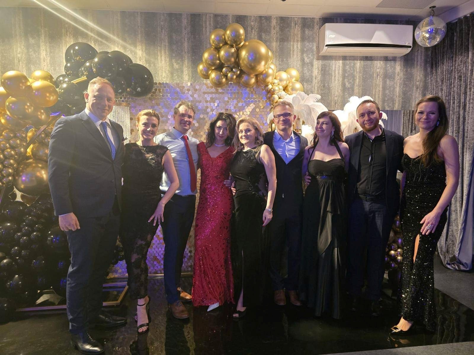 Wisienką na torcie okazał się występ naszych muzykujących kolegów (główny organizator Balu dr Grzegorz Żołędziewski na perkusji!), którzy z powodzeniem wykonali kilka utworów, dając tym samym odetchnąć zawodowym artystom. Roztańczona i rozśpiewana publiczność gromkim aplauzem nie tylko nagrodziła ale i nakłoniła muzykujących medyków do bisowania. Całości dopełniła wyśmienita kuchnia oraz doskonała obsługa kelnerska, które spotkały się z dużym uznaniem gości. Wieczór upłynął w radosnej i serdecznej atmosferze sprzyjającej rozmowom i budowaniu relacji poza szpitalnymi korytarzami.