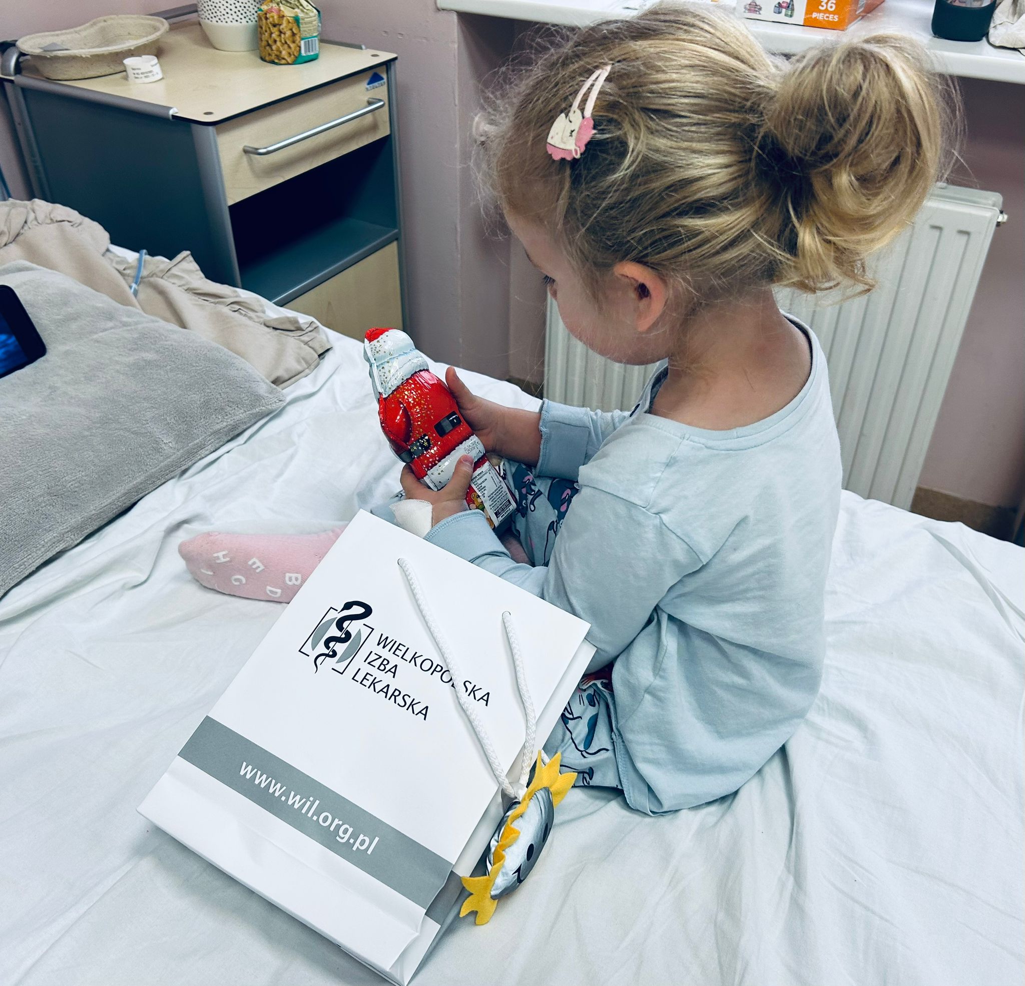 Wśród podarunków znalazły się m.in. kolorowanki z WILusiem – sympatyczną maskotką Wielkopolskiej Izby Lekarskiej, które od razu wzbudziły zainteresowanie małych pacjentów.