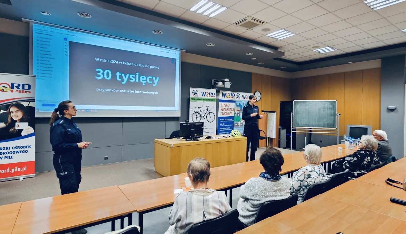 Spotkanie rozpoczęły funkcjonariuszki z Komendy Powiatowej Policji, omawiając różne rodzaje oszustw, na które narażone są osoby starsze. Wśród nich wymieniły m.in. oszustwa: „na wnuczka” lub członka rodziny, próby wyłudzenia pieniędzy przez telefon, SMS lub e-mail, fałszywe oferty inwestycyjne lub sprzedażowe, podawanie się za pracowników instytucji państwowych czy firm kurierskich oraz próby nakłonienia do udziału w niebezpiecznych transakcjach online. Funkcjonariuszki podkreśliły, jak ważne jest zachowanie ostrożności, weryfikowanie informacji i konsultowanie podejrzanych sytuacji z rodziną lub policją.