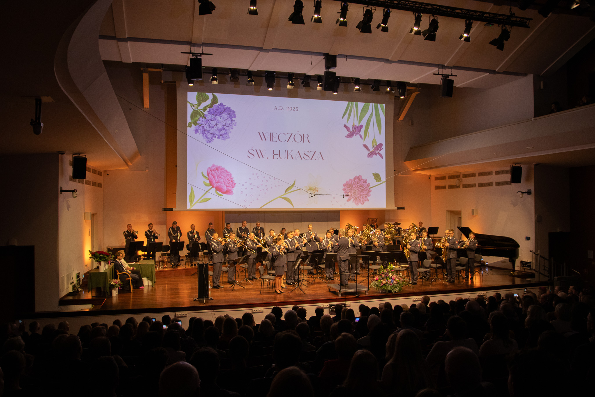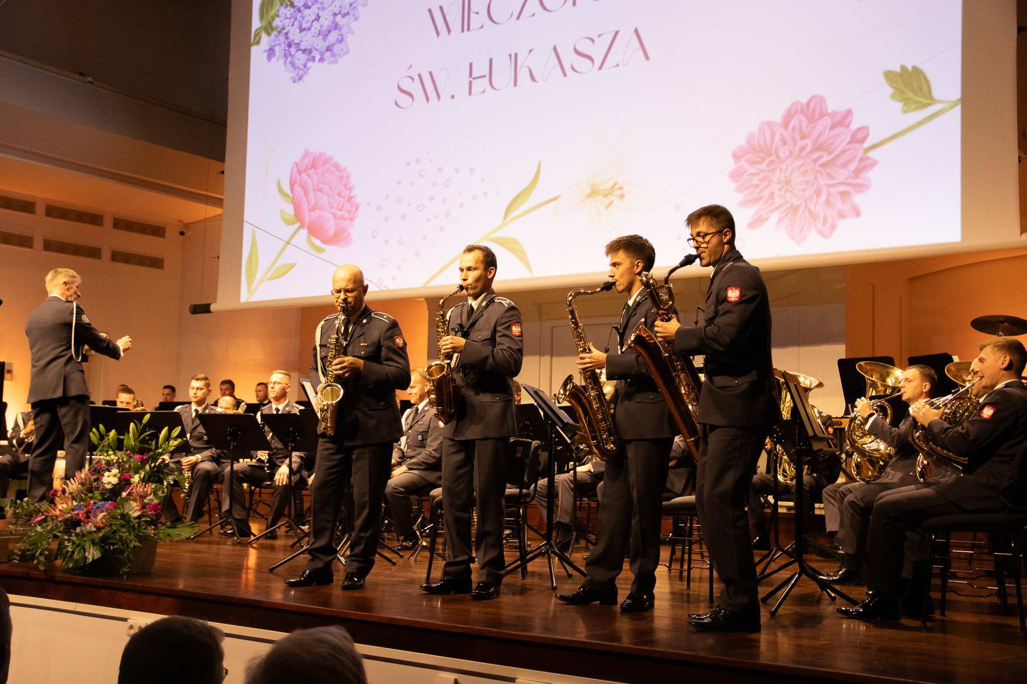 Wieczór św. Łukasza to nie tylko spotkanie ze słowem i refleksją, lecz także z muzyką, która od lat stanowi integralną część tego wydarzenia. W tym roku część artystyczną uświetnił koncert Orkiestry Reprezentacyjnej Sił Powietrznych pod batutą podpułkownika Pawła Joksa. Występ nadał wieczorowi wyjątkowy, podniosły charakter.