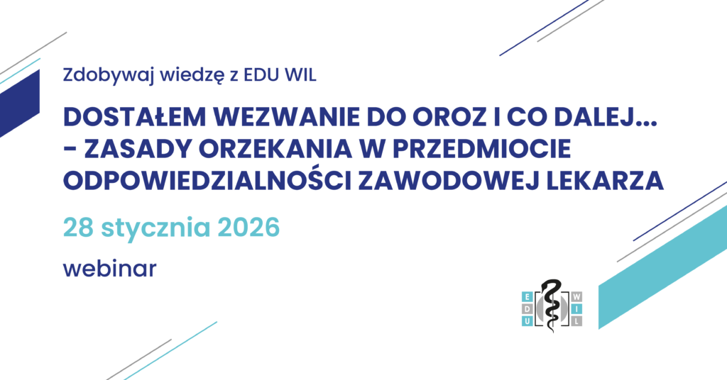 Zapraszamy na webinar: Dostałem wezwanie do OROZ – zasady orzekania w przedmiocie odpowiedzialności zawodowej lekarza. OROZ – Okręgowy Rzecznik Odpowiedzialności Zawodowej to organ izby lekarskiej, którego zadaniem jest prowadzenie postępowań wyjaśniających w przedmiocie odpowiedzialności zawodowej lekarzy w zakresie zasad etyki i deontologii zawodowej.