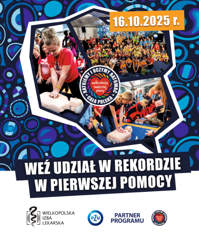 W tym roku Wielkopolska Izba Lekarska włączyła się w akcję Fundacji WOŚP – 16 października w godzinach 11:30-12:30 na terenie naszej siedziby, przy ulicy Feliksa Nowowiejskiego 51 odbędzie się bicie rekordu w jednoczesnym prowadzeniu resuscytacji krążeniowo-oddechowej (RKO).