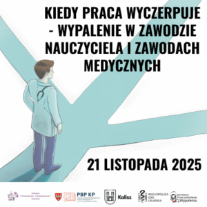 Poradnia Psychologiczno - Pedagogiczna nr 1 w Kaliszu we współpracy z: Miastem Kalisz, Delegaturą Wielkopolskiej Izby Lekarskiej w Kaliszu, Publiczną Biblioteką Pedagogiczną Książnicą Pedagogiczną im. A. Parczewskiego w Kaliszu zapraszają na konferencję: „Kiedy praca wyczerpuje - wypalenie w zawodzie nauczyciela i zawodach medycznych", która odbędzie się 21 listopada 2025 r. o godzinie 17.00 w siedzibie PBP Książnicy Pedagogicznej im....