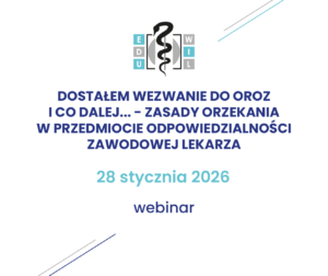 Zapraszamy na webinar: Dostałem wezwanie do OROZ – zasady orzekania w przedmiocie odpowiedzialności zawodowej lekarza. OROZ – Okręgowy Rzecznik Odpowiedzialności Zawodowej to organ izby lekarskiej, którego zadaniem jest prowadzenie postępowań wyjaśniających w przedmiocie odpowiedzialności zawodowej lekarzy w zakresie zasad etyki i deontologii zawodowej. Dostałem wezwanie i co dalej? Wszystko wyjaśni i odpowie na pytania dr n. pr. Magdalena Zamroczyńska....